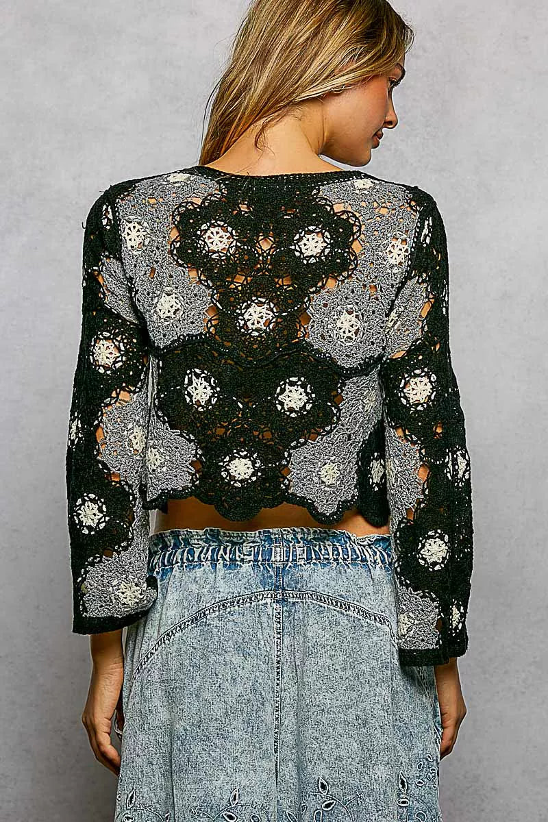 The round neck Long Sleeve Crochet Top with Floral Weave Knit Patterns and Bead Detail is a unique and stylish piece that combines intricate craftsmanship with feminine charm. The floral weave knit patterns add a delicate and romantic touch to the top. The beads detail enhances the design with a subtle touch of elegance and texture. With a relaxed fit and long sleeves, it offers both comfort and sophistication. Embrace a bohemian-inspired look with this beautifully designed crochet top that is sure to make a statement!
