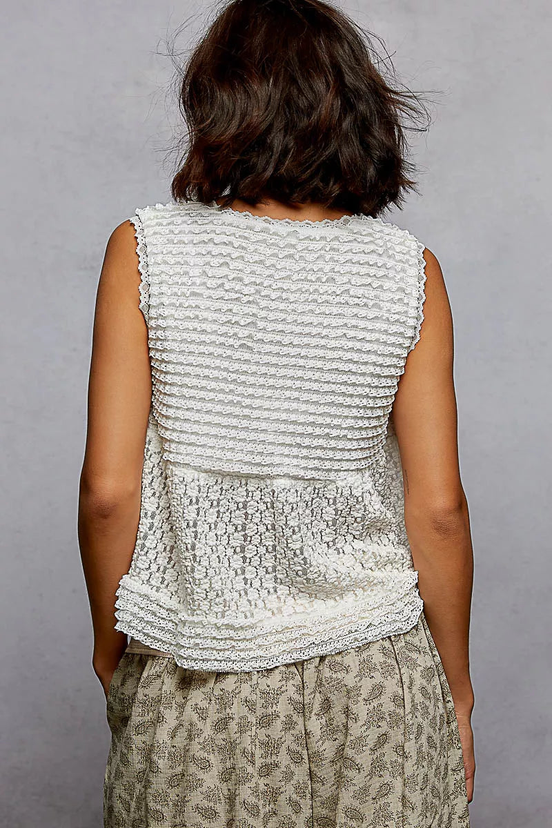 Just BE. POL Ivory Lace Cropped Tank