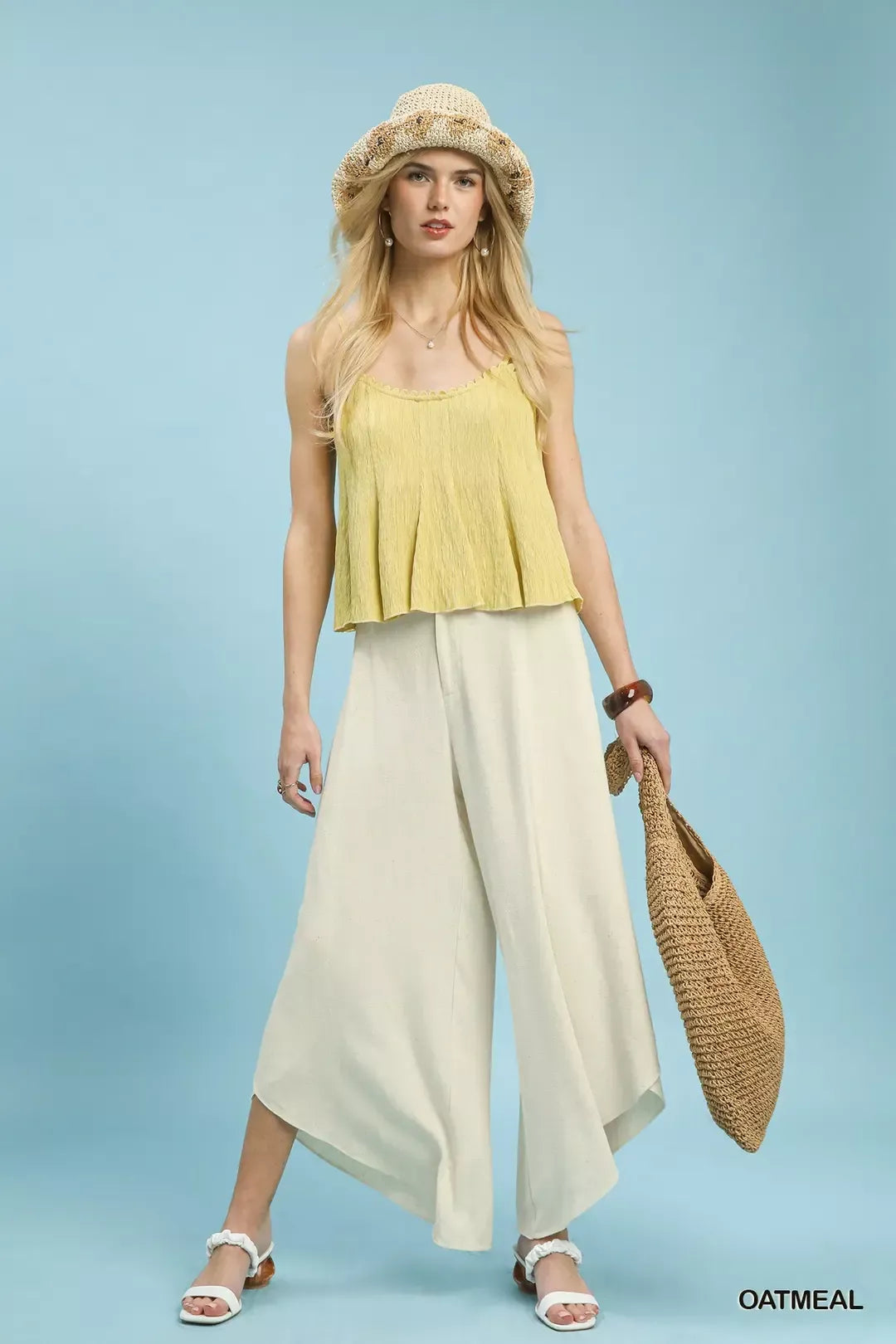 Just BE. Umgee Oatmeal Flowy Asymmetrical Wide Leg Pants