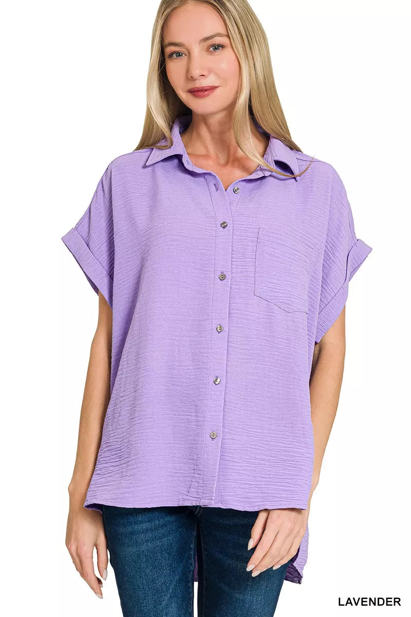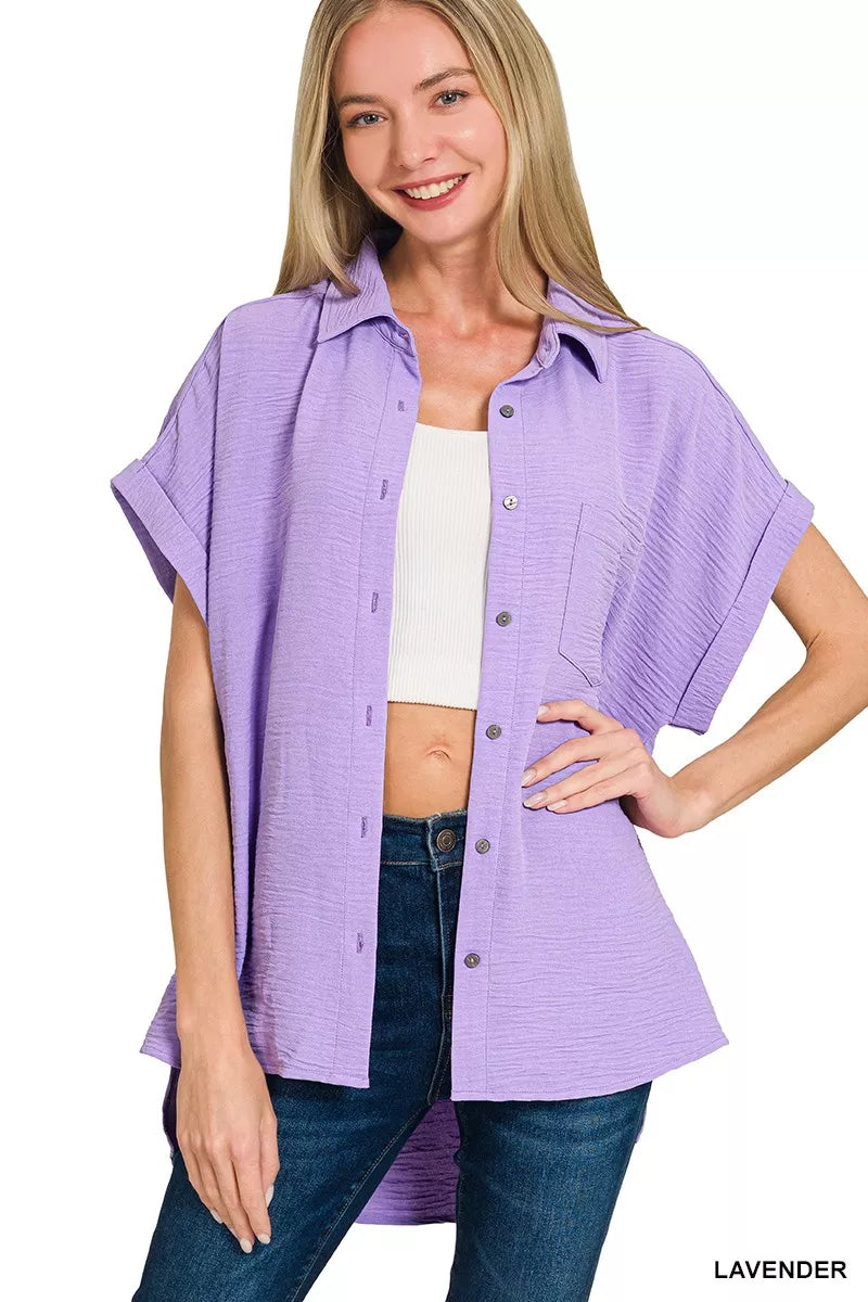Just BE. Zena Lavender Airflow Button Down Shirt